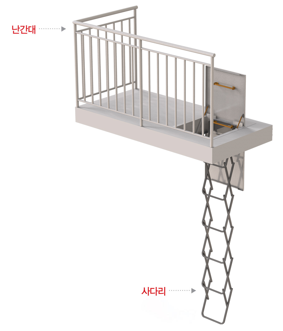 아파트 외벽에 설치하는 탈출형 대피시설로 탑재된 내림사다리를 통해