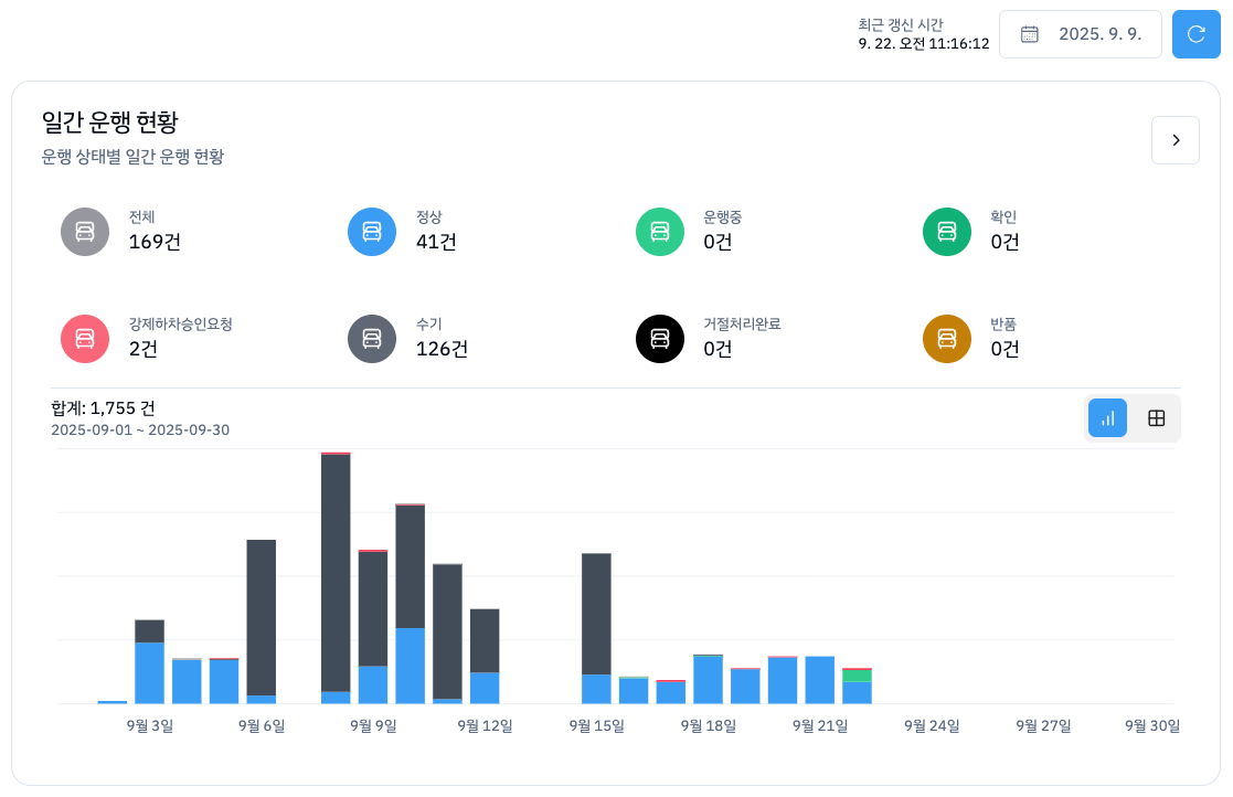 운반 진행률과 통계를 한 눈에 볼 수 있어서 한눈에 현장의 진행 상황을 확인할 수 있게 되어, 효율적인 현장 관리가 가능해졌습니다.