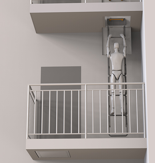 아파트 외벽에 설치하는 탈출형 대피시설로 탑재된 내림사다리를 통해